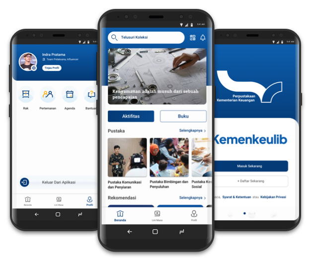 Kemenkeulib adalah sebuah platform yang dapat berisikan layanan Layanan Perpustakaan Digital. Kemenkeulib dilengkapi dengan e-reader untuk membaca beragam koleksi e-book melalui perangkat mobile berbasis android (smartphone-based application).